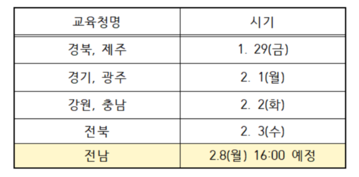 ÀüºÏ±³À°Ã»ÀÇ °æ¿ì Àüº¸ ½Åû ±³»ç Àüü¸¦ ´ë»óÀ¸·Î (°³ÀÎÁ¤º¸°¡ °ø°³µÇÁö ¾Ê´Â ¼±¿¡¼) Àüº¸¼¿¸íºÎ¸¦ »çÀü¿¡ °ø°³Çϰí, ±³»ç ÀÎ»ç ¹ß·É¿¡ ´ëÇÑ ¸¸Á·µµ Á¶»ç±îÁö ½ÃÇàÇϰí ÀÖ´Ù.
