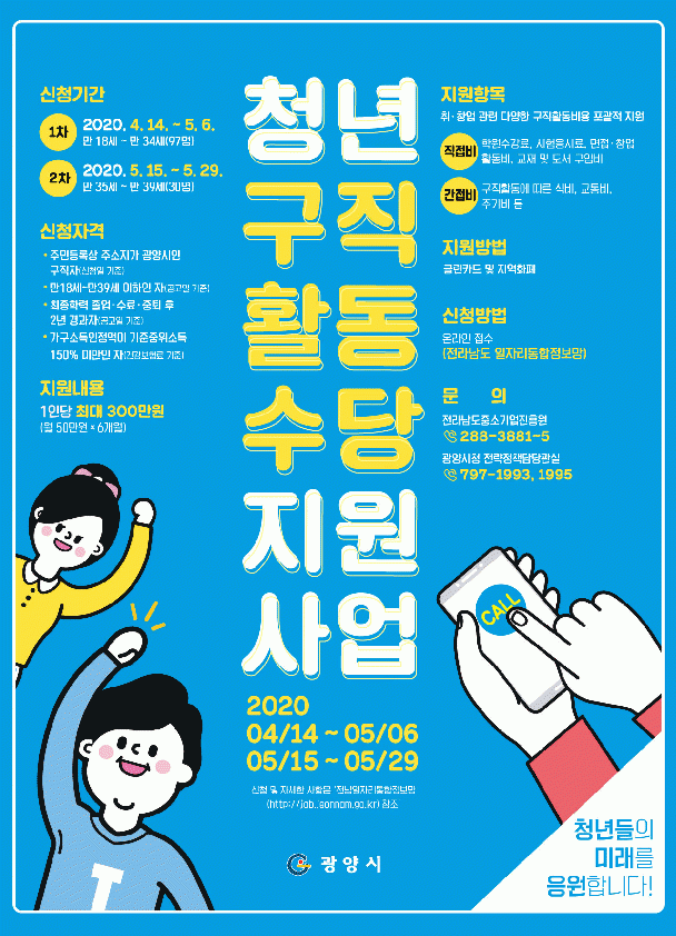 ±¤¾ç½Ã û³â ±¸Á÷Ȱµ¿¼ö´ç Áö¿ø»ç¾÷Àº Ãë¾÷ Áغñ±â°£ Àå±âÈ·Î »ýȰºñ, ±³Åëºñ µî °æÁ¦Àû ¾î·Á¿òÀ» °Þ°í Àִ û³âµé¿¡°Ô °æÁ¦Àû ºÎ´ã ÇØ¼Ò¿Í Ãë¾÷ ÀÇ¿å °íÃë µî Á¶±â Ãë¾÷ ÃËÁøÀ» À§ÇØ ÇÊ¿äÇÑ °æºñ¸¦ Áö¿øÇÏ´Â »ç¾÷ÀÌ´Ù.