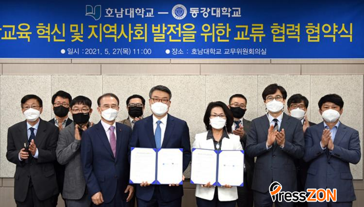 ¹Ú»óö È£³²´ëÇб³ ÃÑÀåÀº ¡°Áö¿ª ¿ì¼ö Àü¹®´ëÇÐÀÎ µ¿°´ëÇб³¿Í ´ëÇÐÇõ½ÅÀ» À§ÇÑ Çù¾à¿¡ ±×Ä¡Áö ¾Ê°í ½ÇÁúÀûÀÎ ±³À°°úÁ¤ ¹× ºñ±³°ú ±³À°ÇÁ·Î±×·¥ÀÇ °³¹ß°ú ±³·ù¸¦ ´õ¿í °ÈÇØ ³ª°¡°Ú´Ù¡±°í °Á¶Çß´Ù.