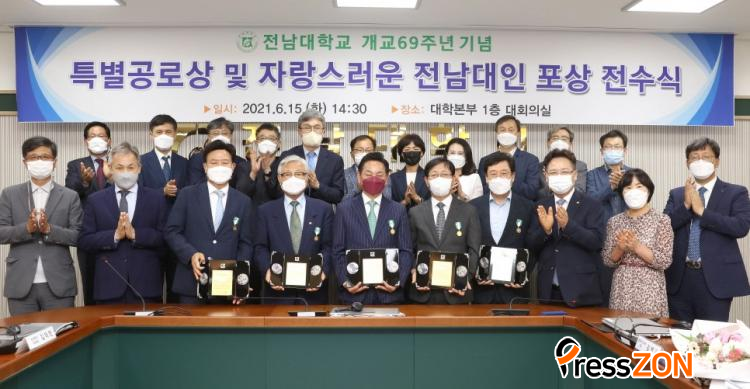 Á¤¼ºÅà ÃÑÀåÀº 6¿ù 15ÀÏ º¸Á÷±³¼öµé°ú Á¶¼ºÈñ Ãѵ¿Ã¢È¸Àå µî µ¿Ã¢È¸ °ü°èÀÚµéÀÌ Âü¼®ÇÑ °¡¿îµ¥ ´ëÇк»ºÎ ´ëȸÀǽǿ¡¼ ¡®Æ¯º°°ø·Î»ó ¹× ÀÚ¶û½º·¯¿î Àü³²´ëÀÎ Æ÷»ó Àü¼ö½Ä¡¯À» °®°í »óÆÐ¿Í ºÎ»óÀ» Àü´ÞÇß´Ù.