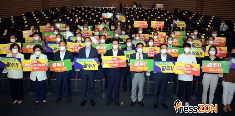 À¯Ä¡À§¿øÈ¸´Â ±¤ÁÖ°¡ 2015³â¿¡ ÇϰèÀ¯´Ï¹ö½Ã¾Æµå ´ëȸ, 2019³â¿¡´Â ¼¼°è¼ö¿µ¼±¼ö±Ç´ëȸ µî ´ë±Ô¸ð ±¹Á¦´ëȸ ¼º°ø°³ÃÖÀÇ °æÇèÀ» Åä´ë·Î 2025³â ¼¼°è¾ç±Ã¼±¼ö±Ç´ëȸ¸¦ ¹Ýµå½Ã À¯Ä¡Çϰڴٴ ÀÇÁö¸¦ ´ÙÁ³´Ù.