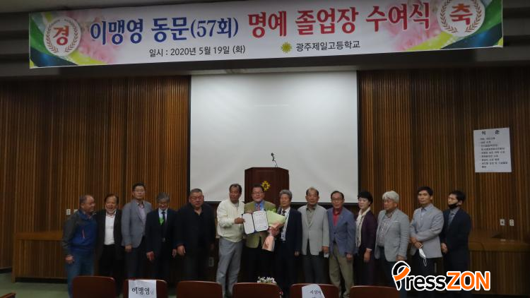 À̳¯ ¸í¿¹Á¹¾÷Àå ¼ö¿©½Ä¿¡ ±¤ÁÖ¼ÁßÀϰíÃѵ¿Ã¢È¸ ÀÓ¿ø, À̸Ϳµ µ¿¹®ÀÇ °¡Á·¡¤Ä£Áö, ±³Á÷¿ø µî 50¿© ¸íÀÌ Âü¼®Çß´Ù.