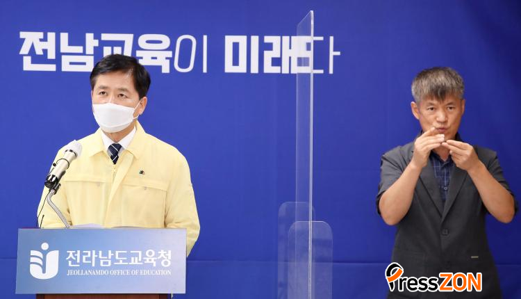 Àå¼®¿õ Àü¶ó³²µµ±³À°°¨Àº 9¿ù 6ÀÏ(¿ù) ¿ÀÈÄ Ã»»ç 2Ãþ ±âÀڽǿ¡¼ ºñ´ë¸é ±ä±Þ ºê¸®ÇÎÀ» °®°í, À̰°Àº ³»¿ëÀÇ Çб³ ³» Äڷγª19 °¨¿°È®»ê ¹æÁö ±ä±Þ´ëÃ¥À» ¹ßÇ¥Çß´Ù.