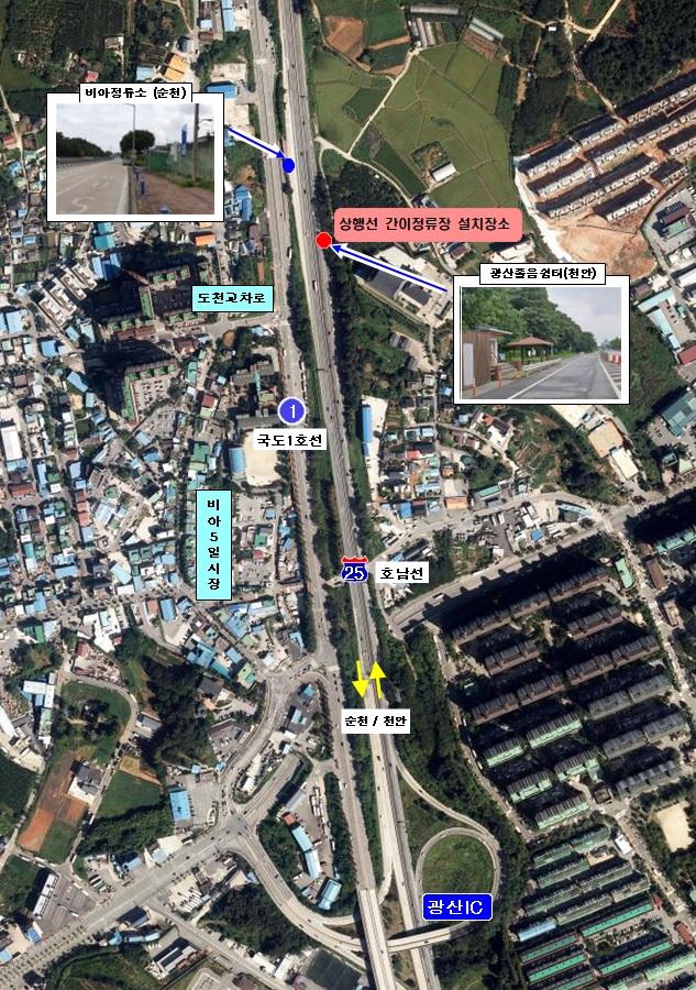 ¼³Ä¡Àå¼Ò´Â ±¤»êIC¿Í ºÏ±¤»êIC Áß°£ÁöÁ¡¿¡ À§Ä¡Çϰí ÀÖÀ¸¸ç, ¹Ý´ëÆí¿¡´Â °í¼Óµµ·Î ÇÏÇ༱ ºñ¾ÆÁ¤·ùÀåÀÌ ÀÖ¾î ÁöÇÏ¿¬°áÅë·Î¸¦ ÅëÇØ À̵¿ÀÌ °¡´ÉÇÏ´Ù.