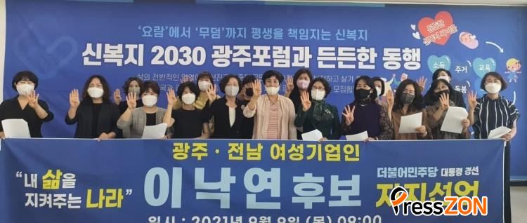 ÀÓ¹ÎÀÚ ¼ºÀÏÀ̳ëÅØ ´ëÇ¥, ÃÖ¼±Èñ º£½ºÆ®µðÀÚÀבּ¸¼Ò ´ëÇ¥, ±èÁ¤¼³ ´ëÇѺұ³¹æ¼Û ¹ßÇàÀÎ µî ±¤ÁÖ¡¤Àü³² ¿©¼º±â¾÷ÀÎ 13¸íÀº 9ÀÏ ½Åº¹Áö±¤ÁÖÆ÷·³ »ç¹«½Ç¿¡¼ À̳«¿¬ Èĺ¸ ÁöÁö¼±¾ðÀ» °®°í ¡°Äڷγª19·Î ÀÎÇÑ °æÁ¦Ä§Ã¼¿Í ÀÏÀÚ¸® °¨¼Ò, ±×¸®°í ¿©ÀüÇÑ ¾ÈÀü ºÒÆòµî°ú ¼ºº°°ÝÂ÷ µîÀÇ ¹®Á¦¸¦ ÇØ°áÇϰí, ³» »îÀ» ÁöÄÑÁÖ´Â »õ·Î¿î ³ª¶ó¸¦ ¸¸µé¾î°¥ ±¹°¡ÁöµµÀÚ´Â À̳«¿¬ Èĺ¸ ¹Û¿¡ ¾ø´Ù¡±¸ç Àû±ØÀûÀÎ ÁöÁö Àǻ縦 Ç¥¸íÇß´Ù.
