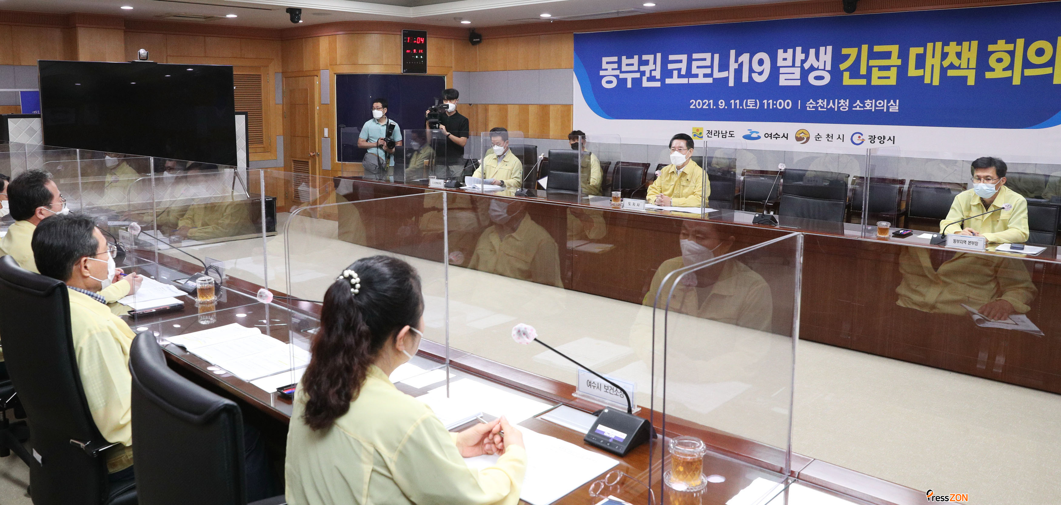±ä±Þ ´ëÃ¥ ȸÀÇ¿¡´Â ¿©¼ö‧¼øÃµ‧±¤¾ç 3°³½Ã ´ÜüÀå, °ü°èÀÚ µî 10¿© ¸íÀÌ Âü¼®ÇÑ °¡¿îµ¥ µ¿ºÎ±Ç Äڷγª19 »óȲÀ» Á¡°ËÇÏ°í °øµ¿ ´ëÀÀ ¹æ¾ÈÀ» ³íÀÇÇß´Ù.