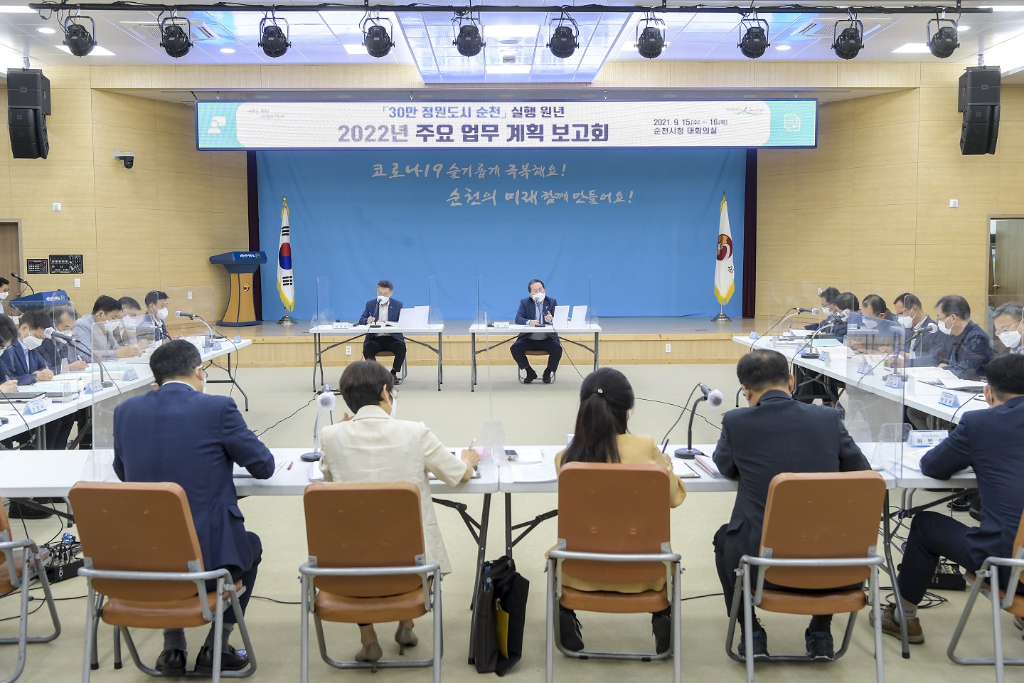 ½Ã´Â 2022³â ½ÃÁ¤ ¸ñÇ¥ ´Þ¼ºÀ» À§ÇØ 1±¹Àå 1Á¤Ã¥ Ã¥ÀÓÁ¦(11°Ç), ¹Ú¶÷ȸ Áö¿ø(63°Ç), 30¸¸ Á¤¿øµµ½Ã ½ÇÇà(37°Ç), °ø¾à(33°Ç), ÁÖ¿äÇö¾È(147°Ç), ½Ã¹Îü°¨ ½ÃÃ¥(110°Ç), Çѱ¹ÆÇ ´ºµô 2.0(14°Ç) µî ÃÑ 415°ÇÀÇ »ç¾÷¿¡ ´ëÇÑ ÃÎÃÎÇÑ º¸°í¿Í ÁúÀÇÀÀ´äÀ» ÁøÇàÇßÀ¸¸ç, À§µå Äڷγª ´ëÀÀ¹æ¾È, ½Ã¹Î ÀÏÀÚ¸® âÃâ, ź¼ÒÁ߸³ µµ½Ã ½ÇÇö, ½Ã¹Î ü°¨½ÃÃ¥ µî¿¡ ´ëÇØ¼µµ ÁýÁß ³íÀǰ¡ ÀÌ·ç¾îÁ³´Ù.