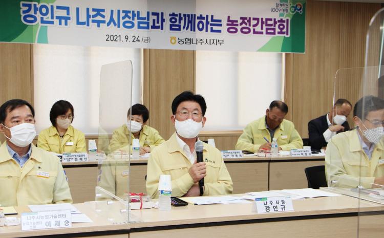 27ÀÏ ½Ã¿¡ µû¸£¸é À̳¯ °£´ãȸ´Â °ÀÎ±Ô ½ÃÀå, ¹Ú³»Ãá ³óÇù³ªÁÖ½ÃÁöºÎÀå, À̰èÀÍ ³ªÁÖ½ÃÁ¶ÇտÇùÀÇȸÀå(´Ù½Ã³óÇùÁ¶ÇÕÀå), ÀÌÀç½Â ³ó¾÷±â¼ú¼¾ÅͼÒÀåÀ» ºñ·ÔÇÑ ³ó¡¤ÃàÇù Á¶ÇÕÀå, ½Ãû °ü°èºÎ¼ °ø¹«¿ø µî 30¿©¸íÀÌ Âü¼®Çß´Ù.