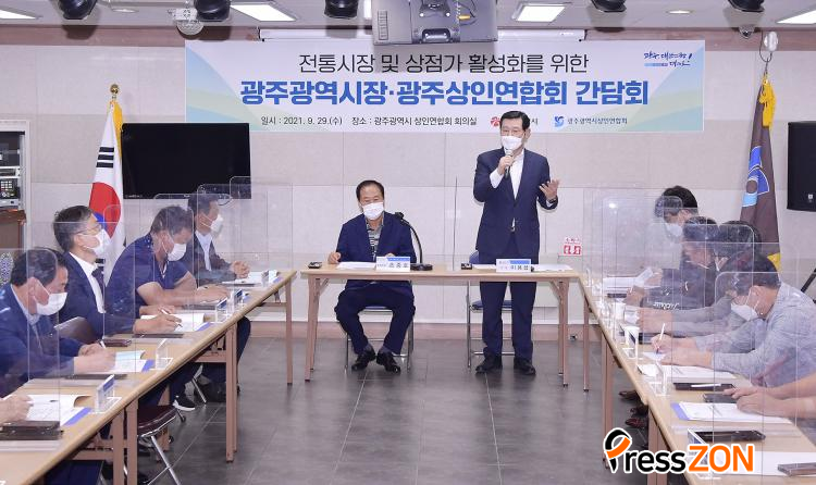 [ÇÁ·¹½ºÁ¸] À̿뼷 ±¤ÁÖ±¤¿ª½ÃÀåÀº 29ÀÏ ±¤ÁÖ»óÀο¬ÇÕȸ ´ëȸÀǽǿ¡¼ ±¤ÁÖ»óÀο¬ÇÕȸ ÀÓ¿øµé°ú °£´ãȸ¸¦ °®°í ÀüÅë½ÃÀå ¹× »óÁ¡°¡, °ñ¸ñ»ó±Ç Ȱ¼ºÈ ¹æ¾È¿¡ ´ëÇÑ ´Ù¾çÇÑ ÀǰßÀ» ³ª´³´Ù.