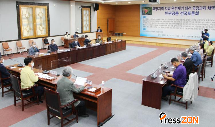 ³ªÁÖ½Ã(½ÃÀå °ÀαÔ)´Â 29ÀÏ Ã»»ç ´ëȸÀǽǿ¡¼ ¡®ÈĹæÁö¿ª Áö·Ú ¿ÏÀüÁ¦°Å ´ë¼± ±¹Á¤°úÁ¦ äÅà ¹Î°ü°øµ¿ Àü±¹Åä·Ðȸ¡¯¸¦ °³ÃÖÇß´Ù°í ¹àÇû´Ù.