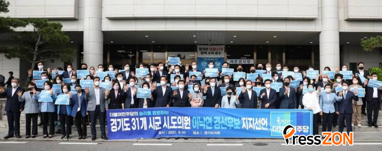 °æ±âµµ 31°³ ½Ã¡¤±º ¹× ½Ã¡¤µµ ÀÇ¿øµéÀº 30ÀÏ ¿ÀÀü °æ±âµµÀÇȸ ¾Õ¿¡¼ À̳«¿¬ Èĺ¸ ÁöÁö¼±¾ð½ÄÀ» °®°í ¡°±¹¹Î ¸ðµÎ¿¡°Ô ½Â¸®¸¦ ¾È°ÜÁÙ Èĺ¸, ¹ÎÁÖ´çÀÇ Á¤½Å°ú ¹ÎÁÖÁÖÀÇ °¡Ä¡·Î ¹ÎÁÖÁ¤ºÎ 4±â¸¦ ÀÌÀ» ÀûÀÓÀÚ, À̳«¿¬ È常¦ ÁöÁöÇÑ´Ù¡±°í °ø°³ ¼±¾ðÇß´Ù.