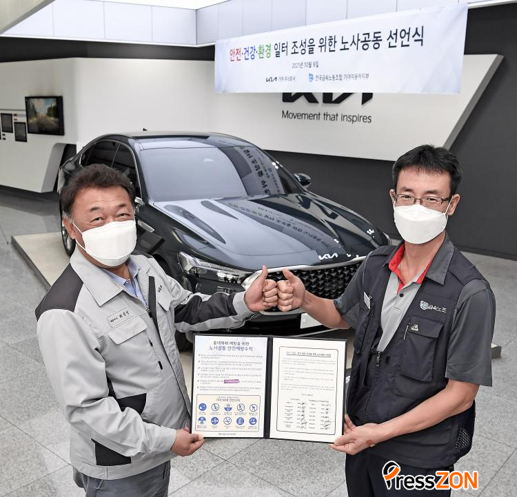±â¾Æ ³ë»ç´Â 6ÀÏ(¼ö) ¿ÀÅä·£µå ±¤¸í(AutoLand ±¤¸í)¿¡¼ ±â¾Æ ´ëÇ¥ÀÌ»ç ÃÖÁØ¿µ ºÎ»çÀå, Àü±¹±Ý¼Ó³ëÁ¶ ±â¾ÆÀÚµ¿Â÷ÁöºÎ ÃÖÁ¾Å ÁöºÎÀå ¹× °¢°øÀå°ú ÆÇ¸Å, Á¤ºñ µî 5°³ ºÎ¹®ÀÇ ³ë»ç´ëÇ¥°¡ Âü¿©ÇÑ °¡¿îµ¥ ¡®¾ÈÀü¡¤°Ç°¡¤È¯°æ ÀÏÅÍ¡¯ Á¶¼ºÀ» À§ÇÑ ³ë»ç°øµ¿ ¼±¾ð½ÄÀ» °³ÃÖÇß´Ù.
