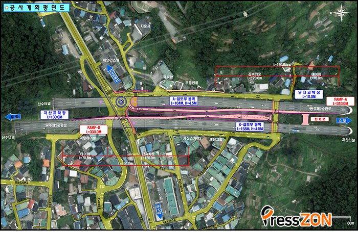 Áö»êIC ÁøÃâ·Î´Â ´çÃÊ ¿ìÃø¹æÇâÀ¸·Î °èȹÇßÀ¸³ª Áֹμ³¸íȸ °úÁ¤¿¡¼ ÁøÃâ·Î ÇϺΰ¡ ÁְŹÐÁýÁö¿ªÀ¸·Î ¼ÒÀ½ÇÇÇØ, ºÐÁø, »ç»ýȰ º¸È£ µîÀÇ ÀÌÀ¯·Î ¹æÇâÀ» ÁÂÃøÀ¸·Î º¯°æÇØ ´Þ¶ó´Â ÁֹεéÀÇ ¹Î¿øÀÌ À̾îÁ® Áö¿ªÁÖ¹Î, ±³ÅëÀü¹®°¡, °üÇÒ °æÂûû µî°ú ¼öÂ÷·ÊÀÇ ÇùÀǸ¦ °ÅÃÄ ÁÂÃø¹æÇâ ÁøÃâ·Î·Î °áÁ¤ÇÏ°Ô µÆ´Ù.