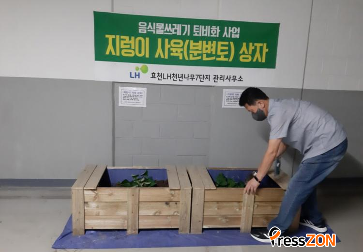 ƯÈ÷ ¾ÆÆÄÆ® ´ÜÁö ³»¿¡ À½½Ä¹° ¾²·¹±â¸¦ ÅðºñÈ ÇÏ´Â Áö··ÀÌ »çÀ° »óÀÚ 2°³¿Í ģȯ°æ ¹ßÈ¿Åë 3°³¸¦ ¼³Ä¡ÇØ Æó±â¹° ¹èÃâ·®À» Å©°Ô ÁÙ¿´´Ù.