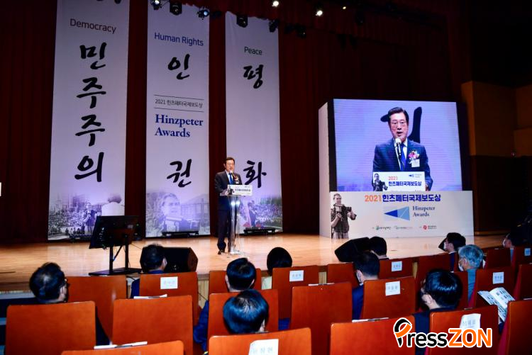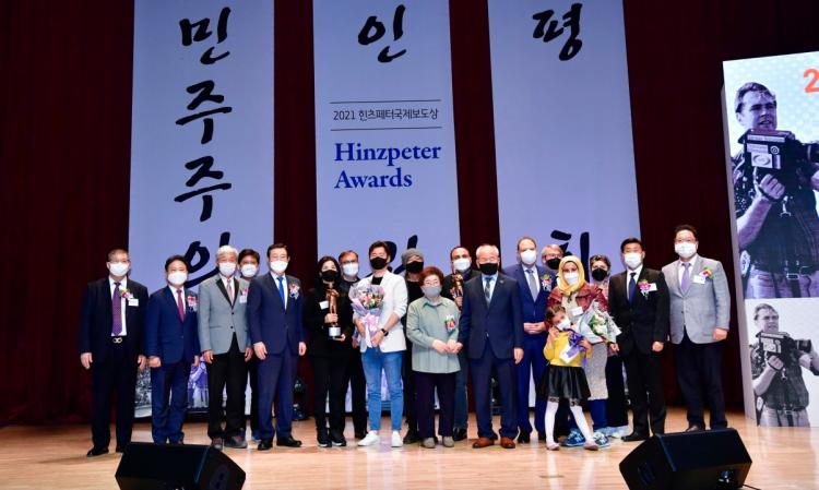 ÀÌ¾î ¡°¡®ÈùÃ÷ÆäÅÍ ±¹Á¦º¸µµ»ó¡¯ÀÌ ¿À¿ù ±¤ÁÖÁ¤½Å°ú ÇÔ²² ¼¼°è ¹ÎÁÖÁÖÀǸ¦ ¹ßÀü½ÃÄÑ ³ª°¡´Â °è±â°¡ µÇ±æ ±â´ëÇÑ´Ù¡±¸é¼ ¡°¿ì¸® ±¤ÁÖ´Â ¾ÕÀ¸·Îµµ Á¤ÀǸ¦ ÁöÄѳ»´Â ¹ÎÁֽùεé, ÇöÀå¿¡¼ ¿ª»çÀÇ Áø½ÇÀ» ±â·ÏÇÏ´Â ±âÀÚµé°ú ÇÔ²² ÇÒ °ÍÀ̸ç, ¡®ÈùÃ÷ÆäÅÍ ±¹Á¦º¸µµ»ó¡¯ÀÌ ¹ÎÁÖ‧ÀαÇÀÇ °¡Ä¡¸¦ ´ãÀº ´ëÇ¥Àû »óÀ¸·Î ÀÚ¸®¸Å±èÇÒ ¼ö ÀÖµµ·Ï Àû±Ø µÞ¹ÞħÇϰڴ١±°í ¹àÇû´Ù.