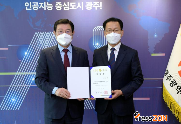 À̿뼷 ±¤ÁÖ±¤¿ª½ÃÀåÀÌ 29ÀÏ ¿ÀÀü ½Ãû Á¢°ß½Ç¿¡¼ ½ÅÀÓ ±è»ó¹¬ ±è´ëÁßÄÁº¥¼Ç¼¾ÅÍ »çÀå¿¡°Ô ÀÓ¸íÀåÀ» ¼ö¿©ÇÑ ÈÄ ±â³äÃÔ¿µÀ» Çϰí ÀÖ´Ù.
