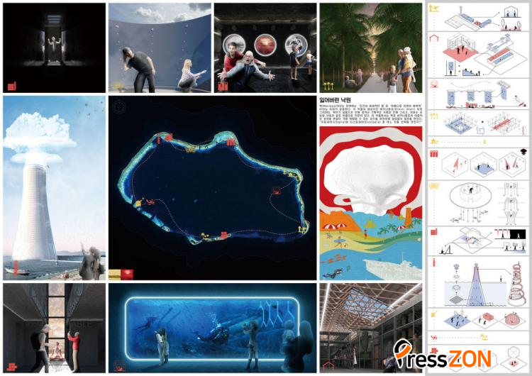 ÀÛǰÀº ¡®ºñŰ´ÏȯÃÊ ÇÙ¹«±â ±â³ä¼¶ ÇÁ·ÎÁ§Æ®¡¯¸¦ ÁÖÁ¦·Î ÇÙ½ÇÇèÀÌ ÁøÇàµÆ´ø ºñŰ´ÏȯÃÊ(Bikini Atoll)ÀÇ ±âÇüÀû ÁöÇü°ú ÀÜÇØ, ÀÌ¿Í ¹Ý´ë·Î ³«¿ø°ú °°Àº ¾Æ¸§´Ù¿î ÀÚ¿¬ ¼Ó¿¡ ´Ù¾çÇÑ °ø°£À» Á¦¾ÈÇß´Ù.