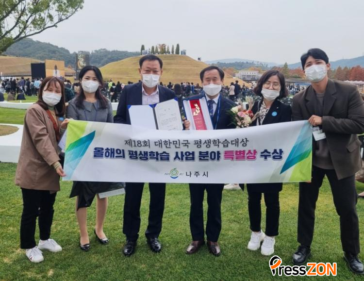 Àü¶ó³²µµ ³ªÁÖ½Ã(½ÃÀå °ÀαÔ)´Â 5ÀÏ ±³À°ºÎ°¡ ÁÖÃÖÇÏ°í ±¹°¡Æò»ý±³À°ÁøÈï¿øÀÌ ÁÖ°üÇÏ´Â ¡®Á¦18ȸ ´ëÇѹα¹ Æò»ýÇнÀ´ë»ó¡¯ ½Ã»ó½Ä¿¡¼ ¡®¿ÃÇØÀÇ Æò»ýÇнÀ »ç¾÷ºÎ¹®¡¯ Ưº°»óÀ» ¼ö»óÇß´Ù°í ¹àÇû´Ù.