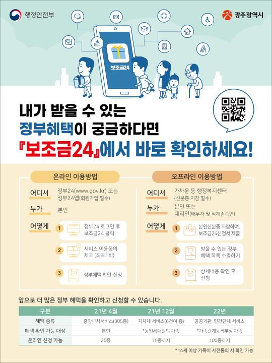 [ÇÁ·¹½ºÁ¸] ±¤ÁÖ±¤¿ª½Ã´Â Á¤ºÎ24 ·Î±×ÀÎ ÇÑ ¹øÀ¸·Î Á¤ºÎ ¹× ÁöÀÚü¿¡¼ Á¦°øÇÏ´Â °¢Á¾ ÇýÅÃÀ» È®ÀÎÇÒ ¼ö ÀÖ´Â ¡®º¸Á¶±Ý24¡¯ ¼ºñ½º¸¦ 12¿ùºÎÅÍ È®´ë ¿î¿µÇÑ´Ù.