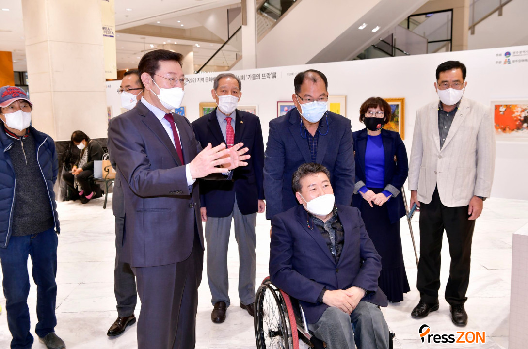 | | À̿뼷 ±¤ÁÖ±¤¿ª½ÃÀåÀÌ 8ÀÏ ¿ÀÈÄ ¼±¸ ½Å¼¼°è¹éÈÁ¡ 1Ãþ °¶·¯¸®¿¡¼ ¿¸° '±¤ÁÖÀå¾Ö¿¹¼úÀÎÁö¿øÇùȸ °¡À»Àü½Ãȸ'¿¡ Âü¼®ÇØ Àå¾Ö¿¹¼úÀεéÀ» °Ý·ÁÇϰí ÀÛǰÀ» °ü¶÷ÇÑ µÚ ±â³äÃÔ¿µÀ» Çϰí ÀÖ´Ù. |