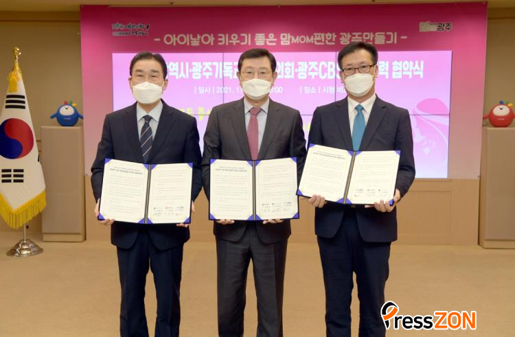[ÇÁ·¹½ºÁ¸] ±¤ÁÖ±¤¿ª½Ã´Â 9ÀÏ ½Ãû ºñÁî´Ï½º·ë¿¡¼ À̿뼷 ½ÃÀåÀ» ºñ·ÔÇØ ±¤ÁÖ±¤¿ª½Ã±âµ¶±³±³´ÜÇùÀÇȸ °Èñ¿í ȸÀå°ú ±¤ÁÖCBS Á¤¿ë¼± ´ëÇ¥°¡ Âü¼®ÇÑ °¡¿îµ¥ ¡®¾ÆÀ̳º¾Æ Ű¿ì±âÁÁÀº ¸¾(MOM) ÆíÇÑ ±¤ÁÖ¸¸µé±â¡¯ ½ÇÇöÀ» À§ÇÑ ¡®Áö¿ª»çȸ Ä·ÆäÀÎ È®»ê µî »óÈ£Çù·ÂÀ» À§ÇÑ ¾÷¹«Çù¾à¡¯À» ü°áÇß´Ù.