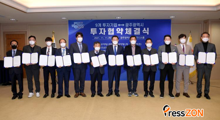 [ÇÁ·¹½ºÁ¸] ±¤ÁÖ±¤¿ª½Ã´Â 11ÀÏ ½Ãû ºñÁî´Ï½º·ë¿¡¼ ±¹³» 9°³ ±â¾÷°ú ÃÑ 573¾ï¿øÀÇ ÅõÀÚ¿Í 340¿©¸í °í¿ëâÃâÀ» À§ÇÑ ÅõÀÚÇù¾à(MOU)À» ü°áÇß´Ù.