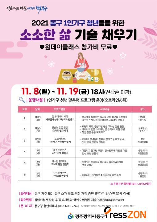 ¸ðÁý ±â°£Àº ¿À´Â 19ÀϱîÁöÀ̸ç Âü¿© ´ë»óÀº µ¿±¸ °ÅÁÖ Ã»³â ¶Ç´Â °ü³» ´ëÇп¡ Àç(ÈÞ)ÇÐ ÁßÀ̰ųª ÀçÁ÷ ÁßÀÎ ¸¸ 39¼¼ ÀÌÇÏ 1ÀÎ °¡±¸ û³âÀÌ¸é ´©±¸³ª Áö¿øÇÒ ¼ö ÀÖ´Ù. ±³À° ±â°£Àº ¿À´Â 23ÀϺÎÅÍ 12¿ù 9ÀϱîÁö ¸ÅÁÖ È, ¸ñ¿äÀÏ ÃÑ 6Â÷½Ã °úÁ¤À¸·Î ÁøÇàµÈ´Ù.