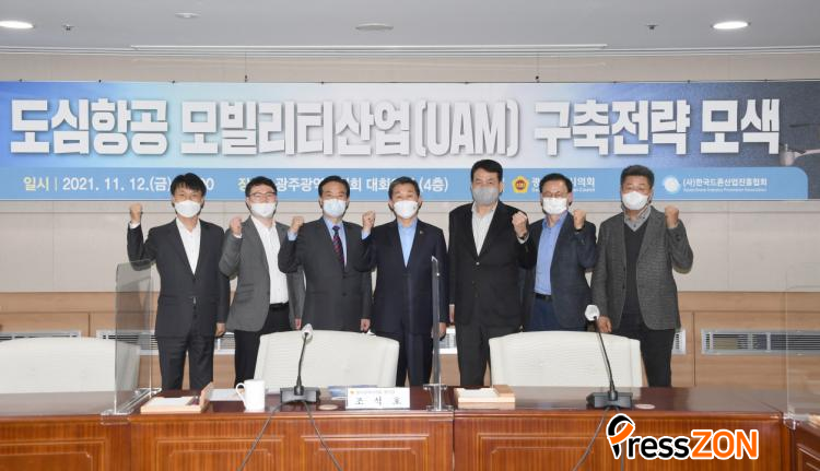 Åä·Ðȸ ÁÂÀåÀ» ¸ÃÀº Á¶¼®È£ÀÇ¿øÀº ¡°UAM(µµ½ÉÇ×°ø ¸ðºô¸®Æ¼»ê¾÷)Àº 4Â÷ »ê¾÷Çõ¸í½Ã´ë, 2045 ź¼ÒÁ߸³À» ¼±¾ðÇÑ ±¤ÁÖÀÇ Àü·« »ê¾÷À¸·Î À°¼ºÇØ¾ß ÇÑ´Ù,¡±°í ¹àÈ÷¸ç ¡°±¤ÁÖ¸¸ÀÇ »ç¾÷È ¹æ¾ÈÀ» À§ÇÑ ÇÕ¸®ÀûÀÎ ´ë¾ÈµéÀ» ¸ð¾Æ¾ß ÇÑ´Ù.¡±°í °Á¶Çß´Ù.
