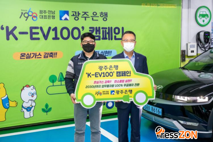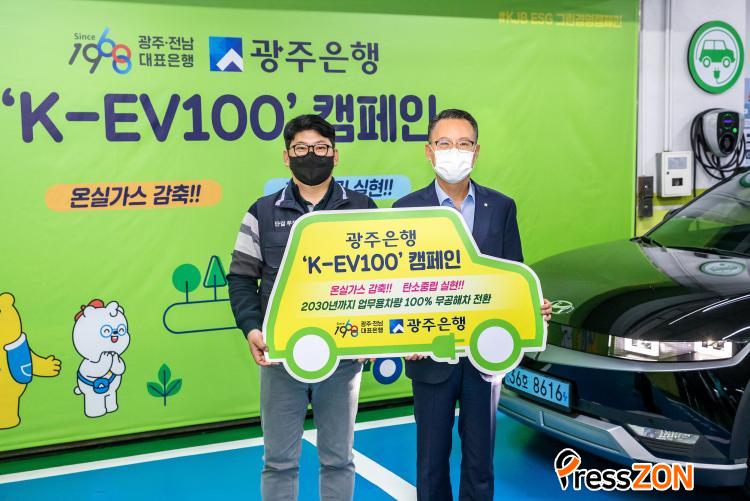 ±¤ÁÖÀºÇàÀº ¡®K-EV100¡¯ °¡ÀÔ ¼±Æ÷½ÄÀ» ÅëÇØ Àü±âÂ÷ ÃæÀü½Ã¼³À» ¼³Ä¡Çϰí, ¾÷¹«¿ë ÀÚµ¿Â÷ÀÇ ÀϺθ¦ Àü±âÀÚµ¿Â÷·Î ÀüȯÇÏ¿© ESG °æ¿µ ½Çõ¿¡ ´ëÇÑ °ÇÑ ÀÇÁö¸¦ ¹àÇû´Ù.