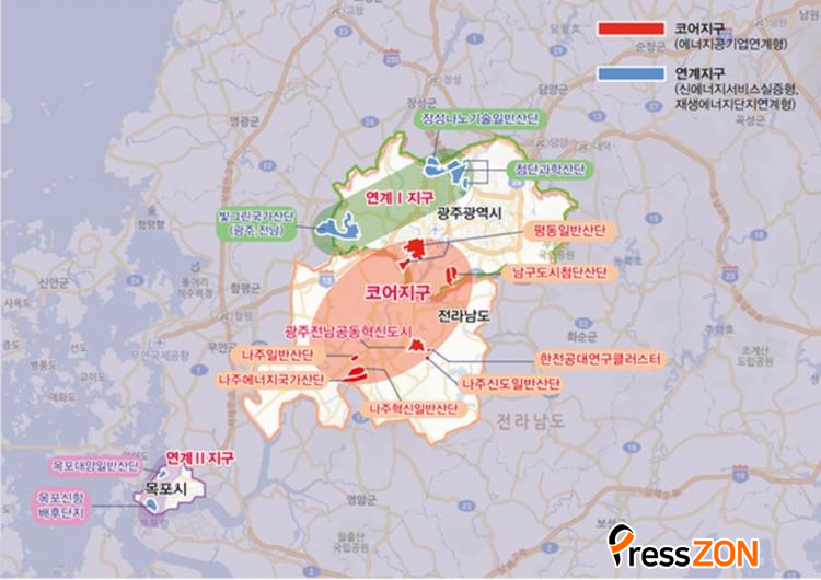 ÇÑÆí '±¤ÁÖ¡¤Àü³² ¿¡³ÊÁö»ê¾÷ À¶º¹ÇÕ´ÜÁö'´Â Áö³ 2019³â 11¿ù Àü±¹ ÃÖÃÊ·Î ÁöÁ¤µÆ´Ù. ³ªÁÖÇõ½Åµµ½Ã±Ç-½º¸¶Æ®±×¸®µå 'ÄÚ¾î(Áß½É)Áö±¸'¿Í ÇÔÆò¡¤À强-¿¡³ÊÁöÈ¿À² '¿¬°è 1Áö±¸', ¸ñÆ÷-dz·Â '¿¬°è 2Áö±¸' µî ÃÑ 3°³ Áö±¸·Î ³ª´¶´Ù.