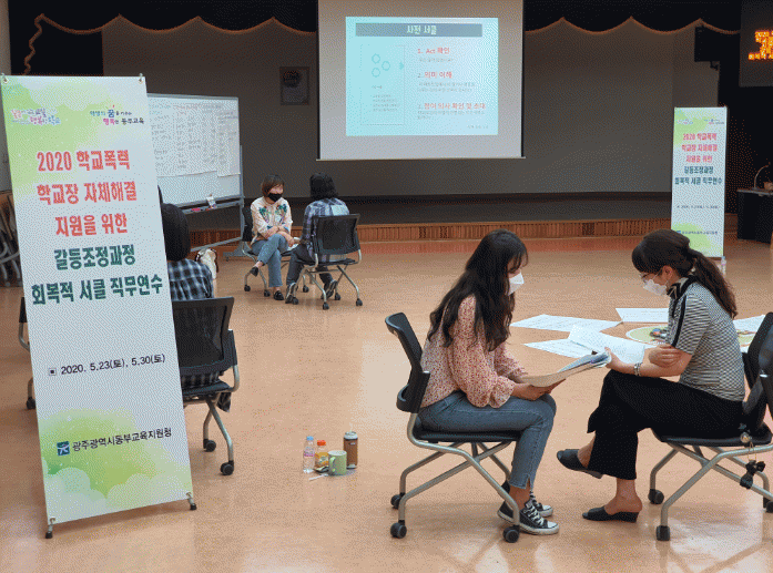ÇϹéÃÊ ±è¹Ì¶ó ±³»ç, Àϵ¿ÃÊ ±èÀμ÷ ±³»ç, ±¤ÁÖÀå¿øÃÊ À̺À±Ý ±³»ç, ±¤ÁÖÁÖ¿ùÃÊ Çö±¤¹Ì ±³»ç°¡ ¿¬¼ö °»ç°¡ µÅ °øµ¿Ã¼ ³» ±¸¼º¿øµé »çÀÌ¿¡¼ ¹ß»ýÇÏ´Â °¥µîÀ» ´Ù·ç°í ÇØ°áÇϴ ȸº¹Àû ¼Å¬(Restorative Circle) ´ëȹýÀ» ¾È³»Çß´Ù.