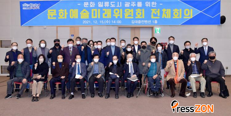 [ÇÁ·¹½ºÁ¸] ±¤ÁÖ±¤¿ª½Ã´Â 15ÀÏ ±è´ëÁßÄÁº¥¼Ç¼¾ÅÍ¿¡¼ ±¤ÁÖ¹®È¿¹¼ú¹Ì·¡À§¿øÈ¸ ÀüüȸÀǸ¦ °³ÃÖÇϰí, Áö³ 3¿ù25ÀÏ ¹®È¿¹¼ú¹ßÀüÀ» À§ÇØ ¹Ì·¡À§¿øÈ¸¿¡¼ ¼±Á¤ÇÑ 8´ë ÇÙ½É Á¤Ã¥ÀÇÁ¦ ÃßÁø»óȲÀ» °øÀ¯Çß´Ù.