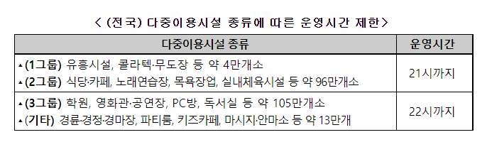 ¾ÕÀ¸·Î ½Ã¹ÎµéÀº ÀÌ ±â°£ ¸ðÀÓ‧¾à¼Ó µî °³ÀÎ °£ Á¢ÃËÀ» ÅëÇÑ °¨¿° À§Çèµµ¸¦ ³·Ãß±â À§ÇØ »çÀû¸ðÀÓ Çã¿ëÀοøÀ» Á¶Á¤ÇØ 8ÀαîÁö °¡´ÉÇß´ø »çÀû¸ðÀÓ ÀοøÀº 4ÀαîÁö¸¸ Çã¿ëÇÑ´Ù.