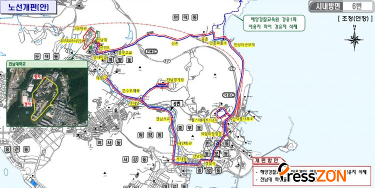 ÀÌ¿¡ µû¶ó 6¹ø ½Ã³»¹ö½º ³ë¼±Àº ¿©¼ö ¹®¼ö¿ìü±¹-¿©¼ö½Ã¹Îȸ°ü–¹Ú¶÷ȸÀå Á¤¹®-¸¸ÈïÆÄÃâ¼Ò¸¦ °ÅÃÄ Àü³²´ë ¿©¼öÄ·ÆÛ½º 3°øÇаü-¿©¼öÄ·ÆÛ½º³» ·ÎÅ͸® ¹ö½º½Â°Àå-Á¤¹®À¸·Î º¯°æµÈ´Ù.
