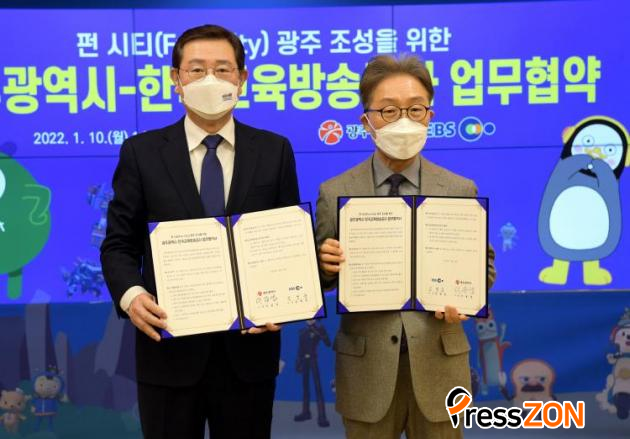 [ÇÁ·¹½ºÁ¸] ±¤ÁÖ±¤¿ª½Ã´Â 10ÀÏ Çѱ¹±³À°¹æ¼Û°ø»ç(»çÀå ±è¸íÁß)¿Í ÆÝ ½ÃƼ(Fun-City) ±¤ÁÖ Á¶¼ºÀ» À§ÇÑ ¾÷¹«Çù¾àÀ» ü°áÇß´Ù.