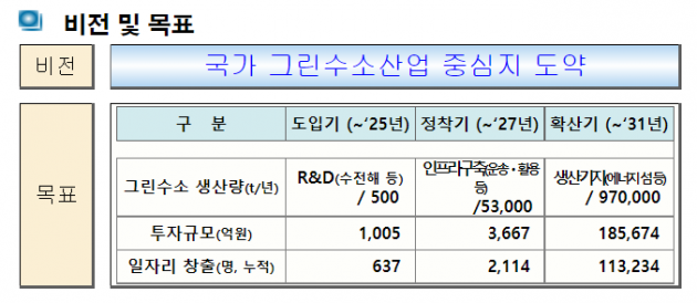 2025³â±îÁö 1´Ü°è µµÀԱ⿡´Â ±×¸°¼ö¼Ò ÀüÁֱ⠻ýÅÂ°è ±¸Ãà¿¡ ÇÊ¿äÇÑ »ý»ê Áغñ¿¡ ÁýÁßÇÑ´Ù. Àç»ý¿¡³ÊÁö¿Í ¿¬°èÇÑ ±×¸°¼ö¼Ò ¼öÀüÇØ±â¼ú ¿¬±¸°³¹ß(R&D) ¼±Á¡À» À§ÇØ ¡ã¼öÀüÇØ ½Ã½ºÅÛ ½Å·Ú¼º Á¦°í ±â¼ú°³¹ß ¡ãe-¸ðºô¸®Æ¼ ¼ö¼Ò¿¬·áÀüÁö ½ÇÁõ ÀÎÇÁ¶ó ±¸Ãà ¡ã±×¸°¼ö¼Ò ¼öÀüÇØ ÀÎÁõ¼¾ÅÍ ±¸Ãà µî 5°³ ¼¼ºÎ°úÁ¦¸¦ ÃßÁøÇÑ´Ù.
