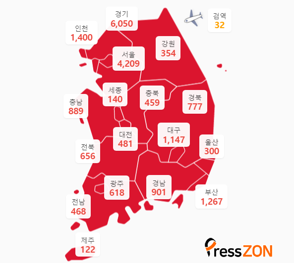 ±¤ÁÖ¿¡¼ ¿ª´ë ÃÖ´Ù È®ÁøÀÚÀÎ 618¸í(ÇØ¿ÜÀ¯ÀÔ 4¸í), Àü³²¿¡¼µµ Àü³¯ ÇÏ·ç µ¿¾È 468¸íÀÌ È®ÁøµÆ´Ù.