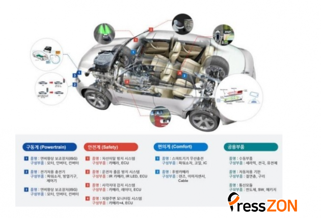 ¡Ø ÀüÀåºÎǰ : ÀÚµ¿Â÷¿¡ »ç¿ë(¶Ç´Â ±¸¼º)µÇ´Â Àü±â¡¤ÀüÀÚ ÀåÄ¡ ¶Ç´Â °ü·Ã ºÎǰ. Àü±âÂ÷ ¸ðÅÍ, Ä«¸Þ¶ó․¶óÀÌ´Ù µî ¼¾¼·ù, Àü±âÂ÷ ¹èÅ͸®, Àü¼±·ù, Á¦¾î±â(PCB), ¹ÝµµÃ¼ µîÀÌ ÇØ´çµÊ